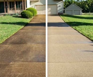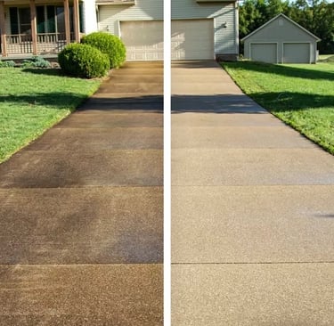 Driveways experience constant exposure to vehicle traffic, oil residue, dirt, and environmental staining that can leave surfaces looking worn and discolored. Because concrete is naturally porous, these contaminants can penetrate below the surface and become difficult to remove with standard cleaning methods. Over time, this buildup can affect both the appearance and usability of the space.