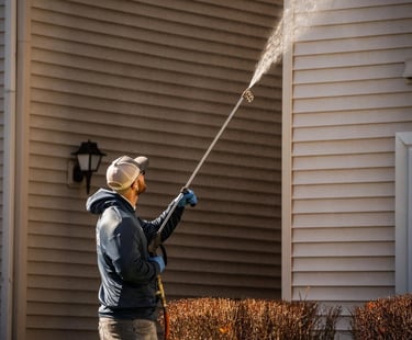 Safe, low-pressure exterior cleaning that removes algae, mold, dirt, and organic buildup from siding. This process restores curb appeal and helps protect your home’s exterior surfaces from long-term damage.