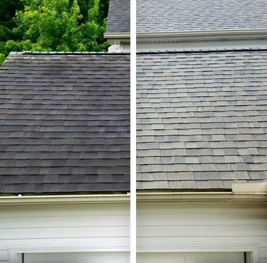 Safe, low-pressure exterior cleaning that removes algae, mold, dirt, and organic buildup from siding. This process restores curb appeal and helps protect your home’s exterior surfaces from long-term damage.